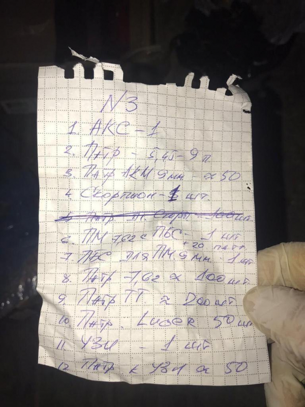 Большая часть найденного оружия не состоит на вооружении ВСУ. На даче полиция обнаружила огнеметы "Шмель" российского производства, пистолеты-пулеметы "Скорпион", американскую винтовку AR-15 с оптическим прицелом и глушителем, автомат УЗИ. А также оружие кустарного производства.