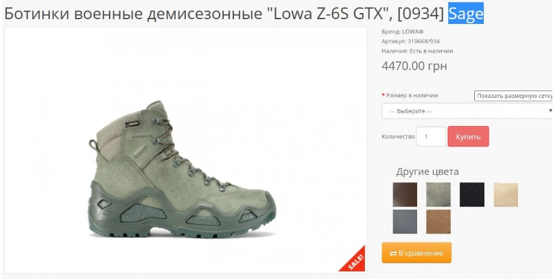 Удалось идентифицировать и обувь, которая была на Зеленском. Это берцы Lowa Z6S GTX, которые по акции можно приобрести за 4470 гривен, а без скидок они стоят 5600 грн.