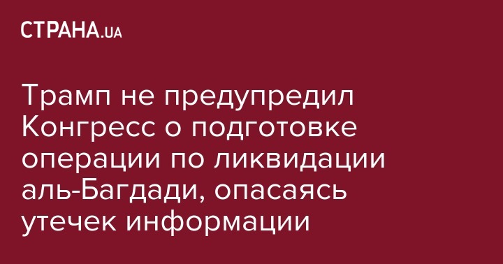 Администрация президента США не стала уведомлять Конгресс о проведении операции по ликвидации главаря ИГИЛ Абу Бакра аль-Багдади, опасаясь утечек в СМИ, которые могли бы поставить под угрозу жизни военнослужащих США. Об этом президент Соединенных Штатов Дональд Трамп заявил во время брифинга в Белом доме 27 октября.