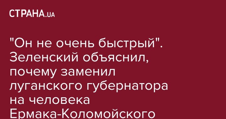 Президент Украины Владимир Зеленский объяснил смену главы Луганской областной государственной администрации, тем, что прошлый глава был медленным. Об этом он сказал во время представления нового главы Луганской ОГА в видеосюжете о поездке президента в Золотое, размещенном на его официальных страницах в соцсетях.