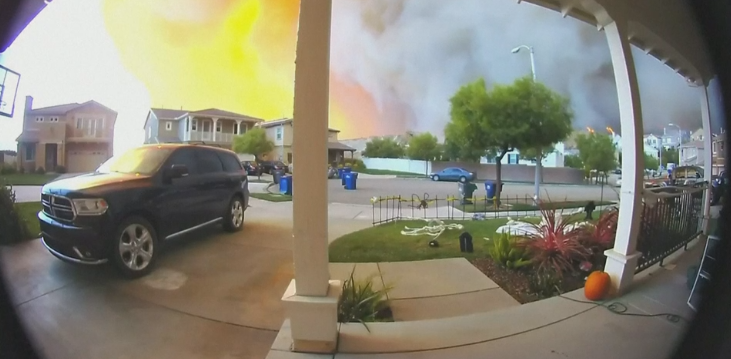 Семья в Калифорнии покидает свой дом из-за угрозы огня, скриншот: BBC