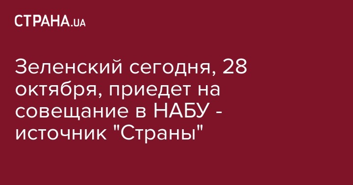Сегодня, 28 октября, президент Украины Владимир Зеленский проведет рабочую встречу в офисе Национального антикоррупционного бюро Украины (НАБУ). Об этом "Стране" сообщил информированный источник.