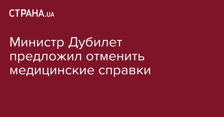 За отмену такого документа, как медицинская справка выступил министр Кабинета Министров Дмитрий Дубилет. Об этом он написал на своей странице в соцсети Facebook.