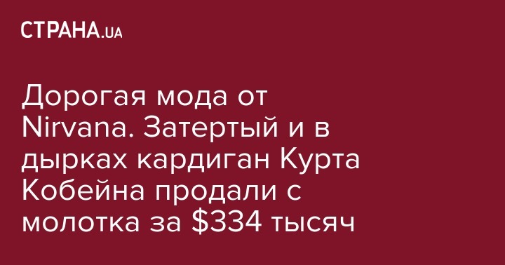 Потертый и поношенный вязаный кардиган болотного цвета с прожженными дырками от сигарет, который когда-то принадлежал лидеру культовой рок-группы Nirvana Курту Кобейну продали на аукционе в нью-йоркском Hard Rock Cafe за 334 тысячи долларов. Об этом сообщает Dazed