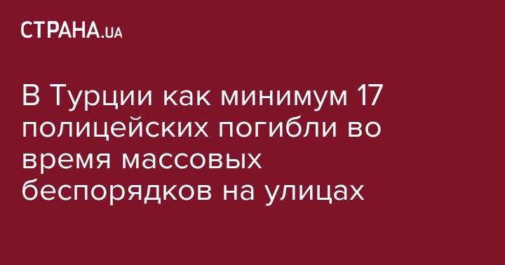 В Турции как минимум 17 стражей порядка погибли во время массовых беспорядков на улицах в Анкаре и Стамбуле при попытке военного переворота. Пока не известно, чью сторону поддерживали погибшие Об этом сообщает турецкое издание Hürriyet.