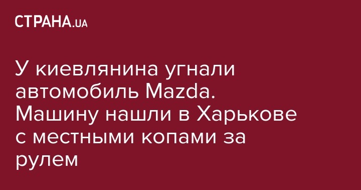 Летом у киевлянина Максима Шкварко угнали автомобиль Mazda 6 в столице, нашлась же машина в Харькове, на ней катались местные полицейские. Об этом идет речь в сюжете ТСН.