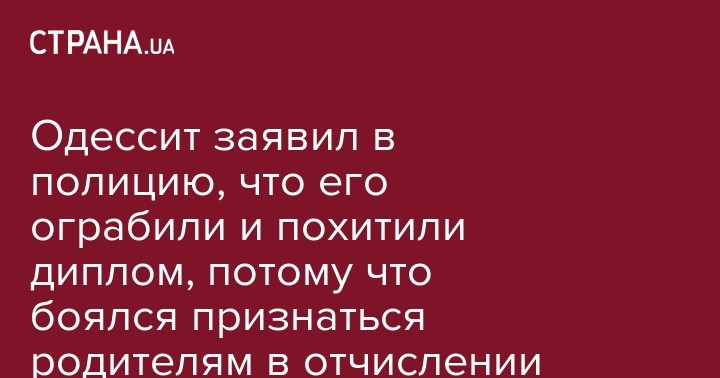 Одессит заявил в полицию, что его ограбили и похитили диплом, потому что боялся признаться родителям в отчислении из вуза