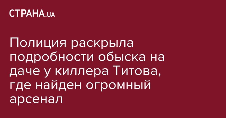 По его словам, у Титова на даче в селе Русская Лозовая в частности было обнаружено и изъято 130 подствольных гранат типа ВОГ-25, 15 корпусов ручных гранат РГД-5, 27 корпусов ручных гранат Ф-1, 2 корпуса ручных гранат РГО, 3 тротиловые шашки по 200 гр, 2 тротиловые шашки по 400 гр, 2 подствольных гранатомета ПГ-25, 7РПГ-26, 7 подрывателей, 4 электродетонатора, 6 РПО огнеметов Шмель (которых нет на вооружении украинской армии), а также предметы, похожие на автоматическое оружие с оптическим прицелом, пулеметы и автоматы Калашникова, пистолеты Макарова, глушители, оружие без маркировки, большое количество патронов и т.д.