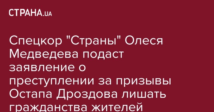 Спецкор "Страны" Олеся Медведева подаст заявление о преступлении за призывы Остапа Дроздова лишать гражданства жителей Донбасса