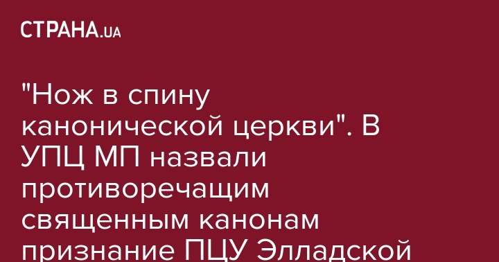 "Нож в спину канонической церкви". В УПЦ МП назвали противоречащим священным канонам признание ПЦУ Элладской церковью