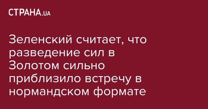 Зеленский считает, что разведение сил в Золотом сильно приблизило встречу в нормандском формате