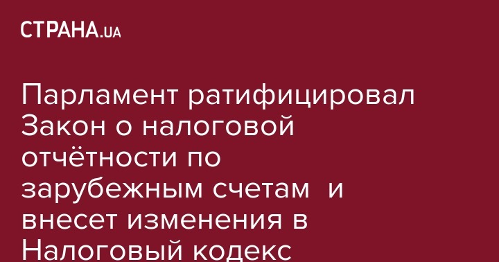 Парламент ратифицировал Закон о налоговой отчётности по зарубежным счетам и внесет изменения в Налоговый кодекс