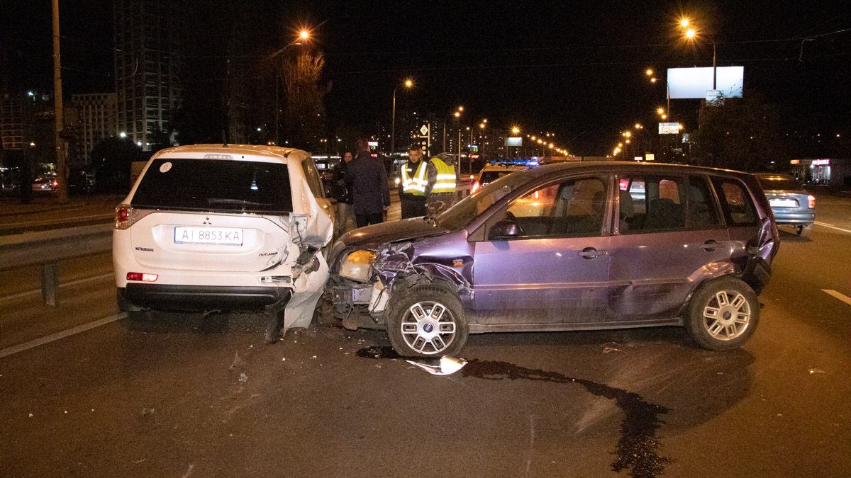 ДТП произошло около 20:00. По словам очевидцев водитель автомобиля Volkswagen Passat на скорости двигался в крайней левой полосе проспекта Академика Глушкова в сторону станции метро "Теремки". Мужчина поздно заметил едущий впереди автомобиль Ford Fusion и попытался резко затормозить. Однако это не спасло его от столкновения.  Passat тормозил около 70 метров, но все равно влетел в заднюю часть Fusion. После чего тот отбросило на Subaru Outback и развернуло в средней полосе.