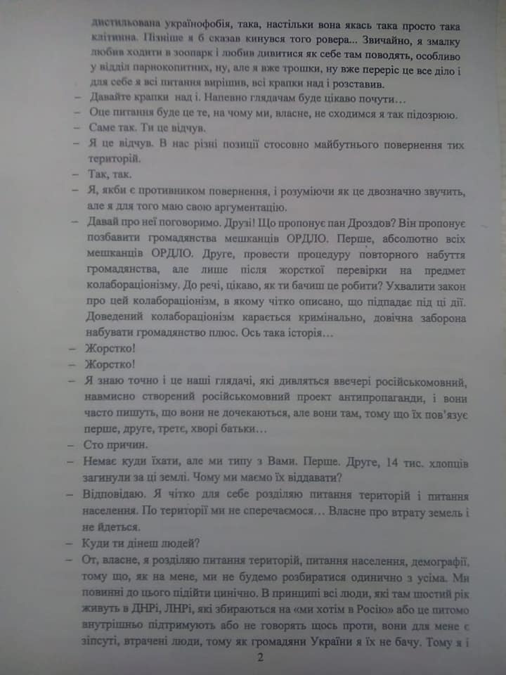 Подробные цитаты и вообще ход передачи можно посмотреть в материале "Страны" "Испорченные люди, худший регион". Как на канале Порошенко лишали гражданства жителей Донбасса.