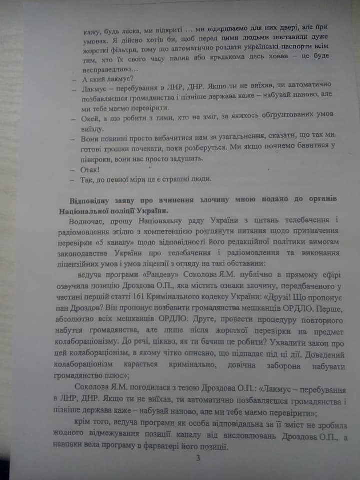 По всем признакам, заявление Остапа Дроздова может подпадать под статью 161 уголовного кодеса - нарушение равноправия граждан. Но, как уже говорилось выше, очевидно участие в этом нарушении и канала Порошенко, чьи редактора поставили эскапады журналиста в эфир. .