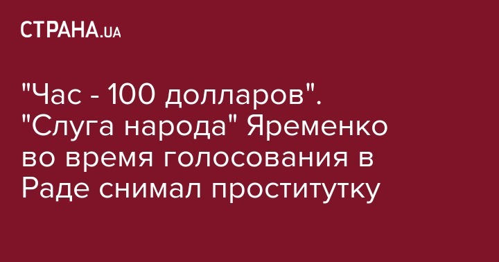 "Час - 100 долларов". "Слуга народа" Яременко во время голосования в Раде снимал проститутку