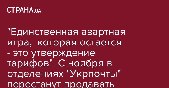 "Так как мы пока не продали еще почтамт под пятизвездочный отель, то чтобы не конкурировать с казино, согласно планируемым решениям Верховной Рады, "Укрпошта" с 1 ноября окончательно прекратила продавать лотереи. Единственная азартная игра, в которую мы продолжим играть - это утверждение тарифов", - отмечается в опубликованном сообщении.