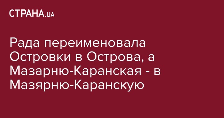 Рада переименовала Островки в Острова, а Мазарню-Каранская - в Мазярню-Каранскую