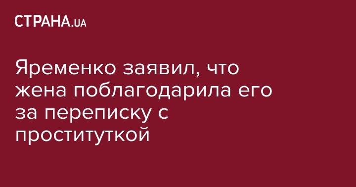 Яременко заявил, что жена поблагодарила его за переписку с проституткой