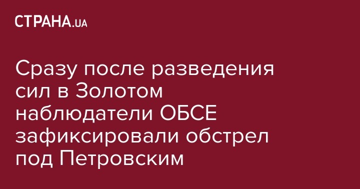 Мониторинговая миссия ОБСЕ в первый день после разведения сил в Золотом, 29 октября, зафиксировала обстрелы возле Петровского, в третьей зоне разведения сил, согласованной на переговорах в Минске. Об этом сообщает "Интерфакс-Украина".
