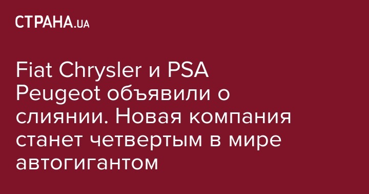 Fiat Chrysler и PSA Peugeot объявили о слиянии. Новая компания станет четвертым в мире автогигантом