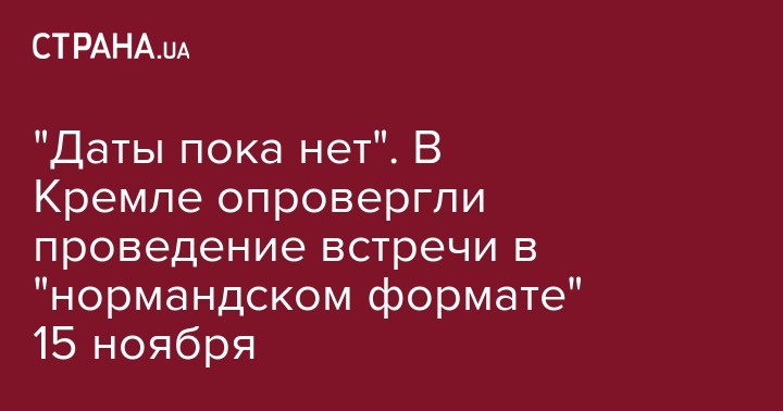 Кремль опроверг сообщения о проведении нормандского саммита 15 ноября и встречу президента РФ Владимира Путина в рамках этого формата с украинским коллегой Владимиром Зеленским, пишет РИА Новости.
