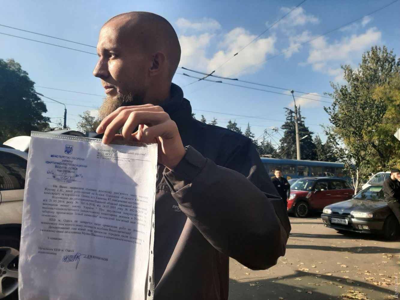 31 октября со здания военкомата в Одессе (ул. Канатная, 87) убрали барельеф советскому маршалу Жукову. Его демонтировали члены общественной организации "Національний спротив", которые позиционируют себя, как борцы за демократические ценности и борцы против коррупции.