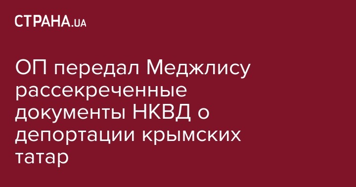 В четверг, 31 октября Офис президента передал Меджлису крымскотатарского народа рассекреченные документы НКВД СССР, касающихся депортации крымских татар в 1944 году. Об этом сообщает пресс-служба главы государства.