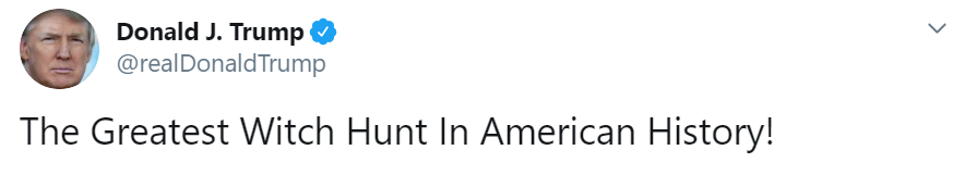 "Величайшая охота на ведьм в американской истории!" - говорится в твиттер-микроблоге Трампа по результатам голосования.