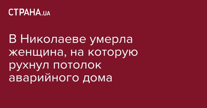 В Николаеве жительница аварийного дома умерла от инсульта после того, как в ее квартире рухнул потолок. Об этом сообщают "Новости N".