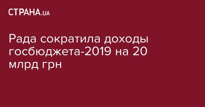 Рада сократила доходы госбюджета-2019 на 20 млрд грн