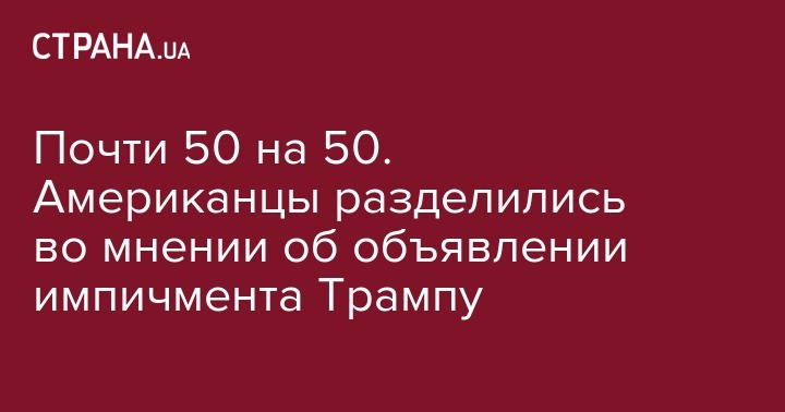 Мнения жителей США разделились почти ровно пополам в вопросе о том, должен ли Конгресс объявлять импичмент президенту США Дональду Трампу, свидетельствуют результаты опроса телеканала ABC News и газеты Washington Post.