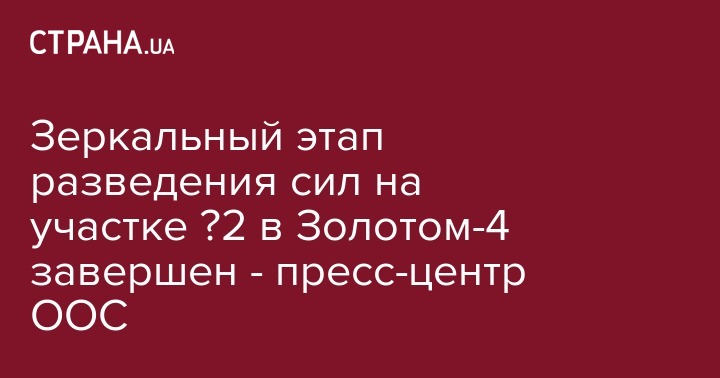 "Завершился этап разведения сил и средств с обеих сторон (зеркально) на участке №2 в районе населенного пункта Золотое-4 Луганской области. Представители СММ (Специально мониторинговой миссии – Ред.) ОБСЕ, в том числе с использованием БПЛА, выполнили верификацию проведенных нами мероприятий", - говорится в вечерней сводке пресс-центра, опубликованной на Facebook-странице пресс-центра.