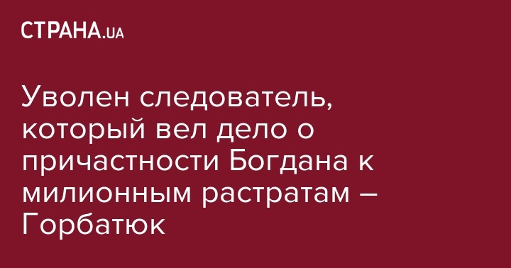 Уволен следователь, который вел дело о причастности Богдана к милионным растратам – Горбатюк