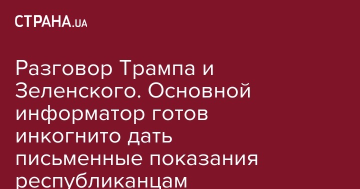Сообщивший о телефонном разговоре президента США Дональда Трампа и президента Украины Владимира Зеленского сотрудник разведки согласился письменно ответить на вопросы Республиканской партии. Об этом сообщил его адвокат Марк Заид. Осведомителя подозревают в связях с Демократической партией, пишет "Коммерсант".