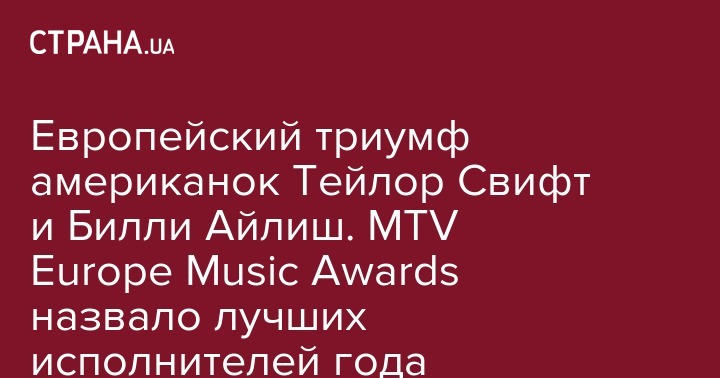 Европейский триумф американок Тейлор Свифт и Билли Айлиш. MTV Europe Music Awards назвало лучших исполнителей года
