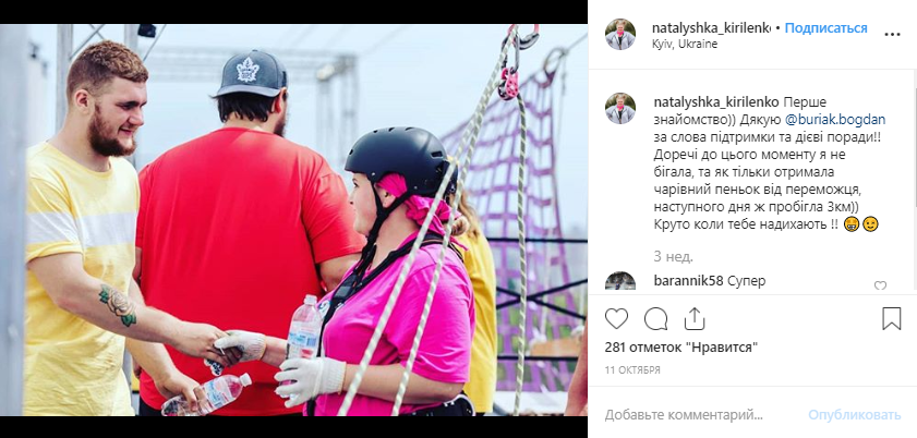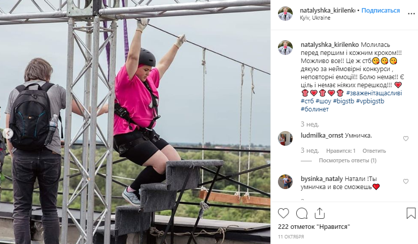 В последнем выпуске проекта "Зважені та щасливі" на телеканале СТБ ушла Наталья Кириленко из команды розовых. 26-летняя участница за 10 недель в условиях телешоу похудела на 23 кг - до 95 кг. Многие зрители привязались к милой девушке и стали поддерживать ее на станице проекта в соцсетях, они выражали сожаление в связи с ее уходом.