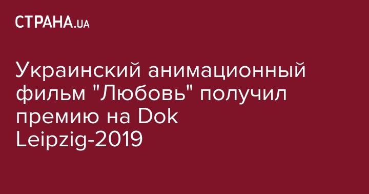 Украинский анимационный фильм Никиты Лыськова "Любовь" получил награду на одном из старейших кинофестивалей документального и анимационного кино Dok Leipzig-2019. Он проходил с 28 октября по 3 ноября в Лейпциге (Германия).