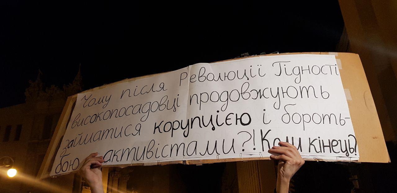 Без Зеленского, но со Стерненко и Супрун. Под ОП проходит акция в день смерти Гандзюк. Фото