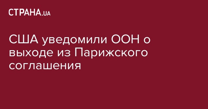 "Сегодня Соединённые Штаты начали процесс выхода из Парижского соглашения. В соответствии с условиями соглашения Соединённые Штаты направили официальное уведомление о своём выходе в Организацию Объединённых Наций", — говорится в сообщении.