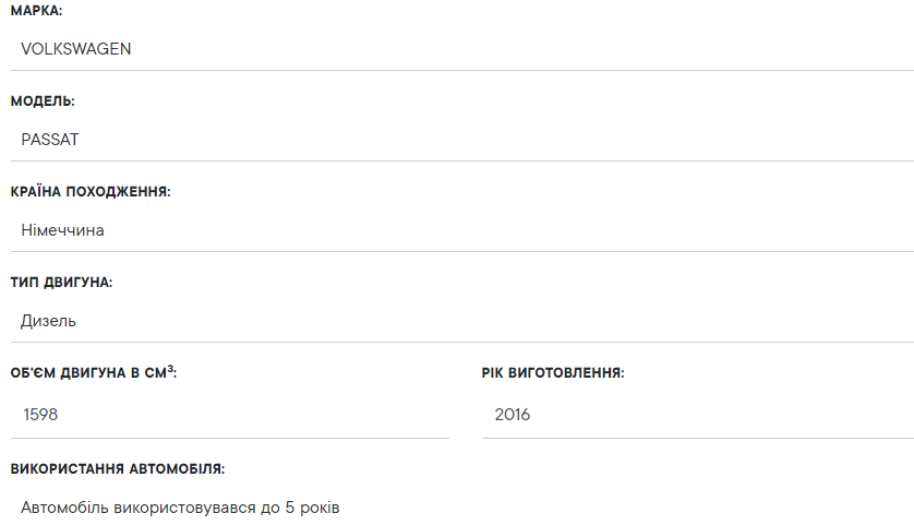 Итак, берем для примера Volkswagen Passat 2016 года выпуска из Германии с дизельным двигателем объемом 1598 куб.см., который использовался менее 5 лет.