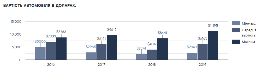 Минимальная стоимость в 2019 году составляла $2840. При такой цене автомобиль растаможат за чуть более чем 37 тысяч гривен.