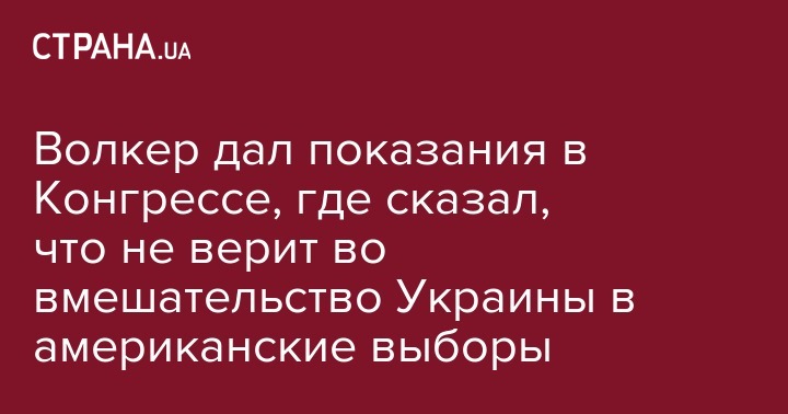 Волкер дал показания в Конгрессе, где сказал, что не верит во вмешательство Украины в американские выборы