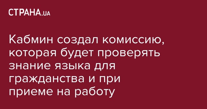 "Кабинет Министров Украины на своем заседании создал Национальную комиссию по стандартам государственного языка, которая также проверять уровень владения государственным языком для получения гражданства Украины или занятия определенных законом должностей", - сказано в сообщении.