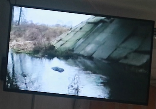 Запись производилась 6 января 2018. На нем показано, что берега реки поросли травой. Под мостом, на берегу, слева на бетонной поверхности обнаружена кровь. Тело Ноздровской было обнаружено с правого берега ниже по течению. Под мостом нашли также части мобильного телефона и 10 ножей.