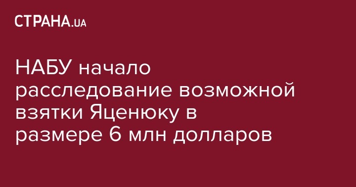 Как известо, 19 сентября в НАБУ поступило обращение о факте предоставления должностным лицом неправомерной выгоды в размере 6 млн долларов Яценюку через тогдашнего депутата Николая Мартыненко. Указанные действия, по мнению заявителей, содержат признаки уголовного правонарушения, предусмотренного ч. 4 ст. 369 Уголовного кодекса.