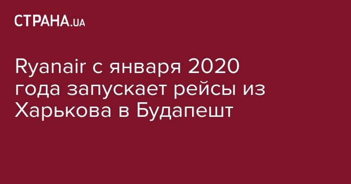 Ирландская авиакомпания-лоукостер Ryanair 16 января 2020 года открывает прямые перелеты из Харькова в Будапешт. Об этом сообщила пресс-служба международного аэропорта "Харьков" в четверг, 7ноября.