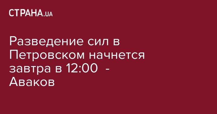 Разведение сил в Петровском начнется завтра в 12:00 - Аваков