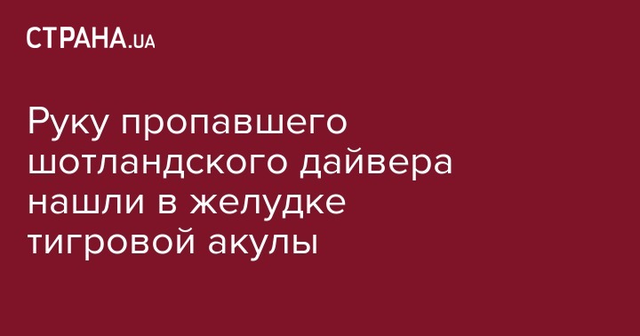 Руку пропавшего шотландского дайвера случайно нашли в желудке тигровой акулы, которую поймали для исследования неподалеку от места, где пропал турист. Об этом пишет Сноб со ссылкой на телеканал Réunion La 1ère.