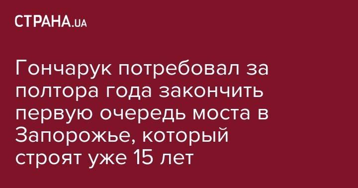 Гончарук потребовал за полтора года закончить первую очередь моста в Запорожье, который строят уже 15 лет